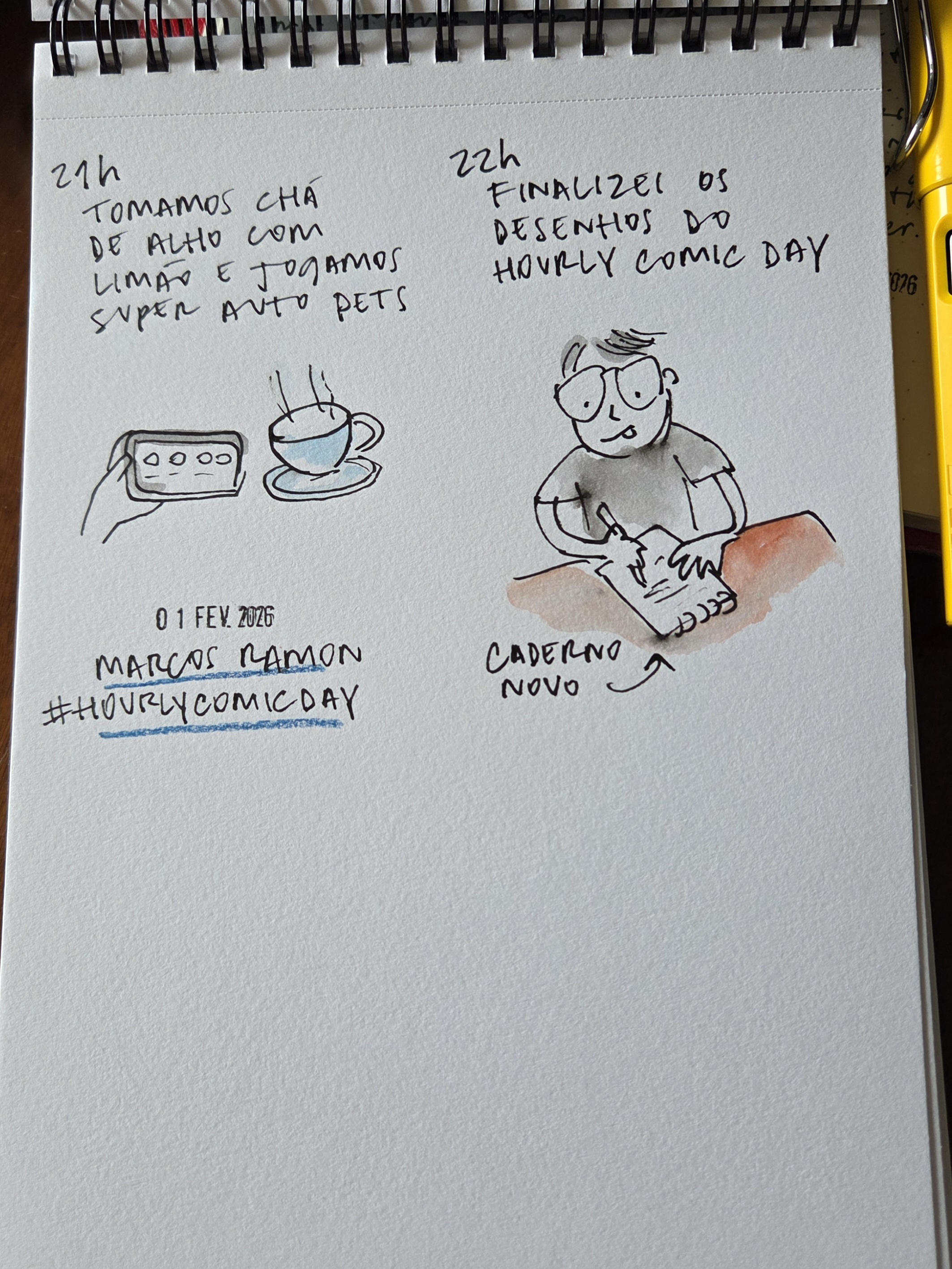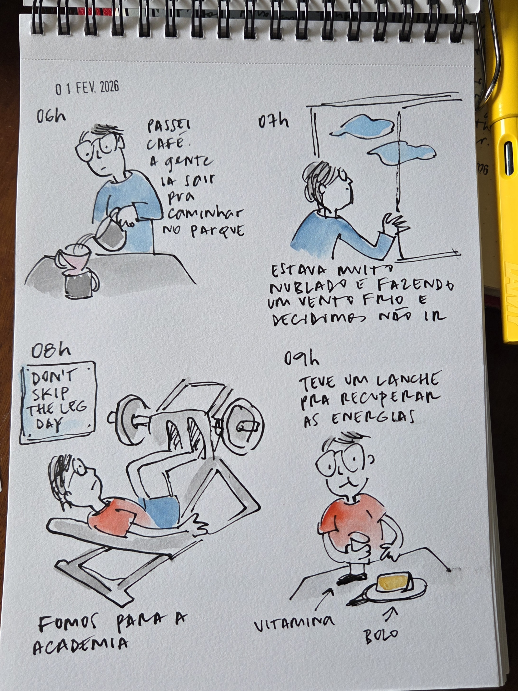 Antes, especialmente quando o Twitter ainda fazia sentido, eu gostava de acompanhar a hashtag e ver o que as pessoas estavam postando. Agora não faço mas isso, mas deixei uma notificação pra me lembrar que dia 01 de fevereiro eu tinha que desenhar o meu dia. 😉